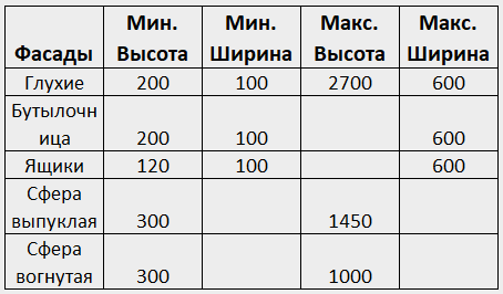 Направление фрезеровки – горизонтальное. Примыкающие фасады слева или справа должны быть одной высоты. Данная фрезеровка делается через шаг полосок - 100 мм. Для более ровной фрезеровки рекомендуем делать шаг фасадов высотой 100 мм. Витрины делаются мыльные. Виды ручек, используемые на этом фасаде: с присадкой, накладные, врезные. Установка стяжек - выпрямителей уточнять у менеджера. На радиусных фасадах витрины делаются без паза под стекло и без переплета. Радиусные фасады изготавливаются на плитах: 16 мм и 18 мм.