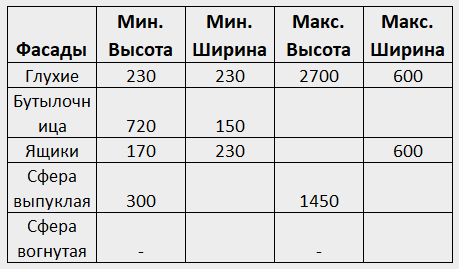 На бутылочнице шириной 150 мм делается тонкая обводка и выход полос в углы. Отступы на фасадах до начала фрезеровки, до тонкой обводки 25 мм. На ящиках отступы сверху и снизу - 30 мм, слева и справа согласно основной фрезеровке. На сферах витрины делаются без паза под стекло и без переплета. Выход полос в углы фасада, делается только на деталях, у которых отступ от края детали одинаковый. Виды ручек, используемые на этом фасаде: с присадкой, накладные, врезные. Установка стяжек-выпрямителей уточнять у менеджера. Радиусные вогнутые фасады на данной фрезеровке не предусмотрены. На радиусных фасадах витрины делаются без паза под стекло и без переплета. Радиусные фасады изготавливаются на плитах: 16 мм и 18 мм.